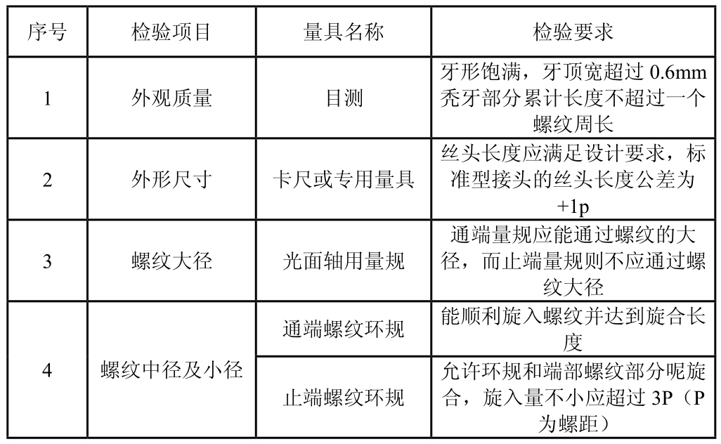 現場接頭檢驗時必須對絲口的長度(標準型接頭要求控制在+1P(P為螺距))和絲口的質量進行逐根目測檢查,每開始加工10個左右,應利用量規等檢驗,不合格的必須進行二次車絲。接頭試件必須在橋墩的施工作業面中隨機截取,以保證工程施工質量。
