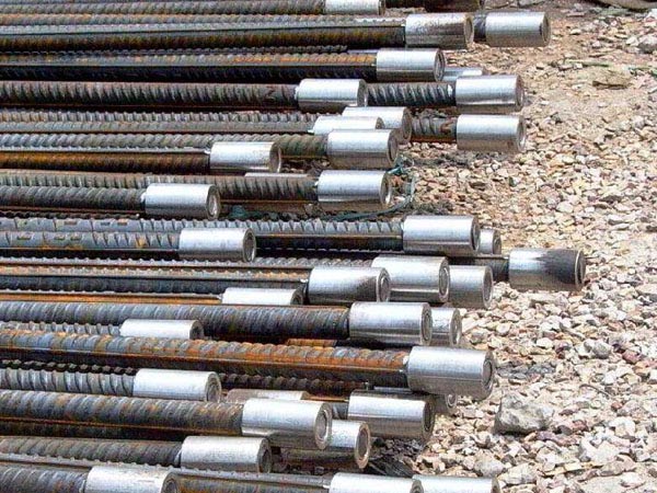 - 鐓粗直螺紋套筒連接是利用鐓粗機先將鋼筋端部鐓粗,然后再利用專用機床對鐓粗段進(jìn)行套絲,通過鋼筋端頭特制的直螺紋和直螺紋套筒咬合形成整體的一種連接方式。