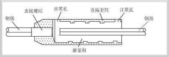 套筒灌漿連接方式是帶肋鋼筋插入內(nèi)腔為凹凸表面的灌漿套筒,在套筒與鋼筋的間隙之間灌注并充滿專用高強水泥基灌漿料,灌漿料凝固后將鋼筋錨固在套筒內(nèi)而實現(xiàn)的一種鋼筋連接方法。